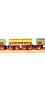 This cool modern Wooden Bullet Train set comes complete with a coach, two trains and track. Magnetic coupling means it can be easily linked with other pieces and is perfect for use on any wooden railway system. Age: 3 years +.Size: L34cm.